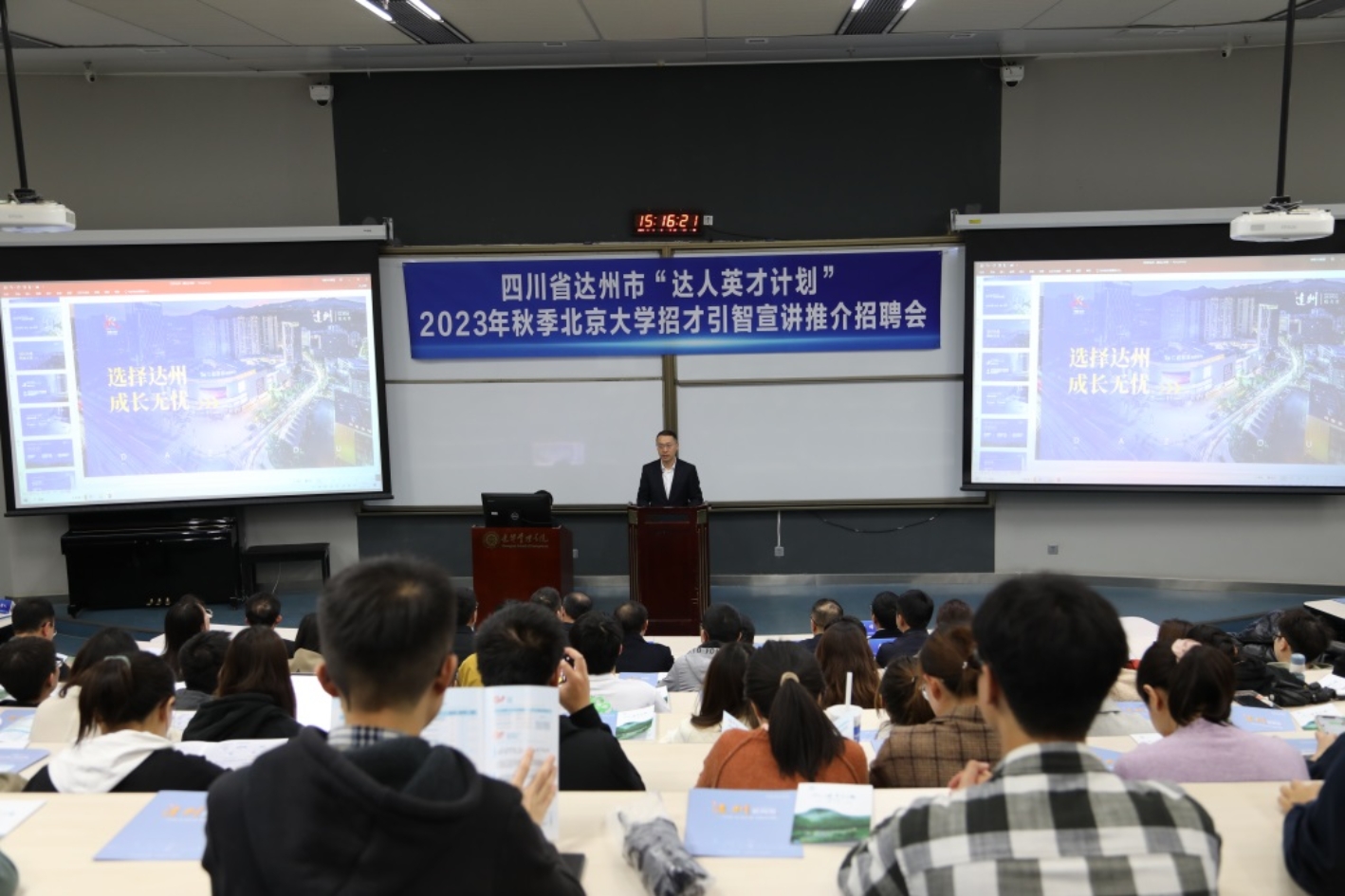 11月5日,以“承巴渠文脉·聚天下英才”为主题,“达州文化进北大”暨招才引智系列活动在北大举行。达州除了为北大学子精心准备一批优质企事业单位岗位外,还在百周年纪念讲堂举办音乐会、展览,让北大师生多角度、近距离感受达州文化魅力,了解达州、关注达州,助力引才聚智。