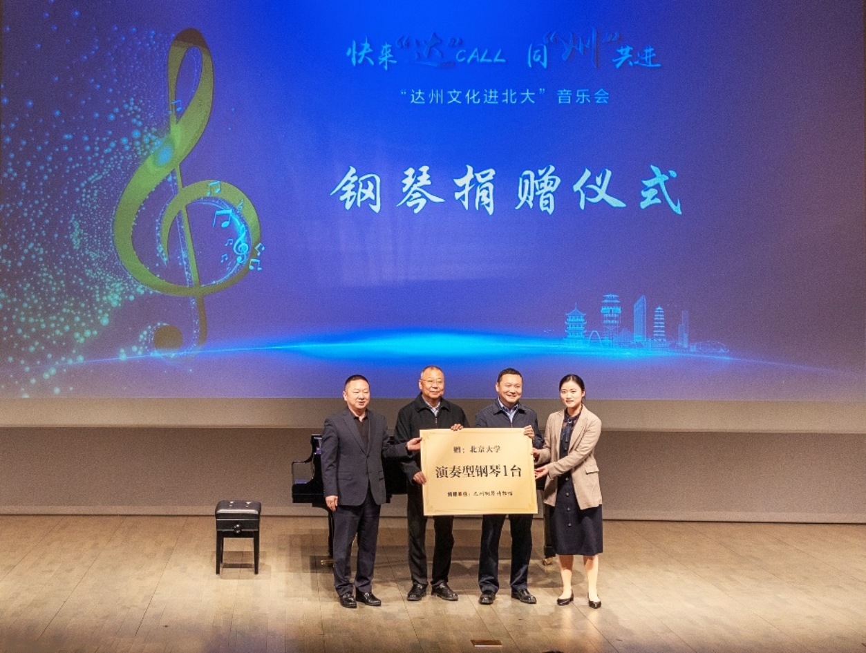 5日晚,在北京大学艺术学院支持下,“达州文化进北大”专场音乐会在讲堂李莹厅举行。音乐会前,孙骏致辞,北大校友、达州钢琴博物馆馆长叶浩捐赠演奏型钢琴一台。