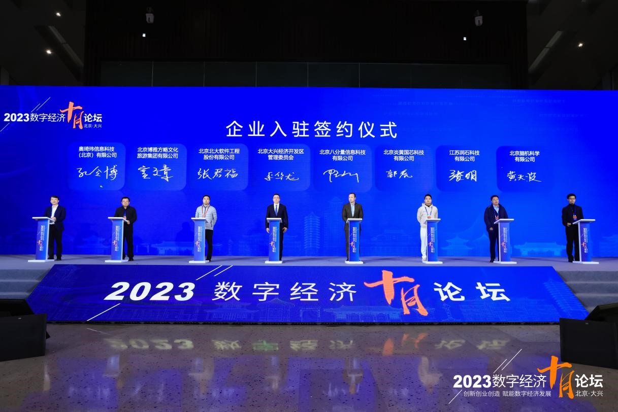 论坛现场,北大软件、博雅方略文旅、奥琦玮、润石科技、八分量、炎黄国芯、北京脑机科学等7家北大软微校友企业与大兴经济开发区进行了集中签约,签约企业涵盖了新一代软件、人工智能、区块链、数字文化等多个领域。