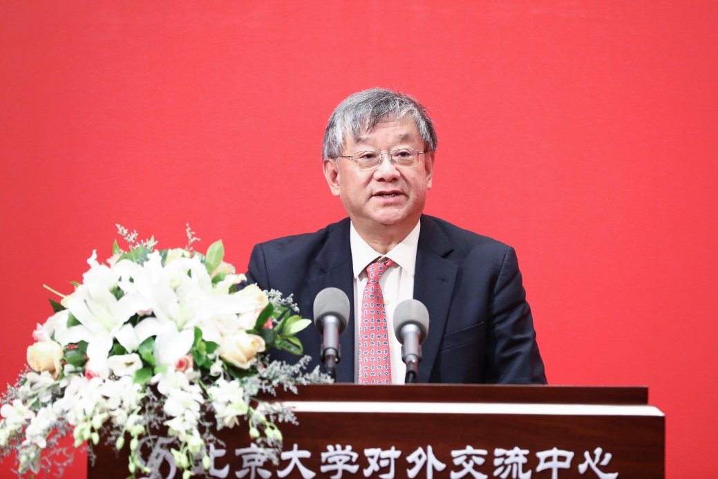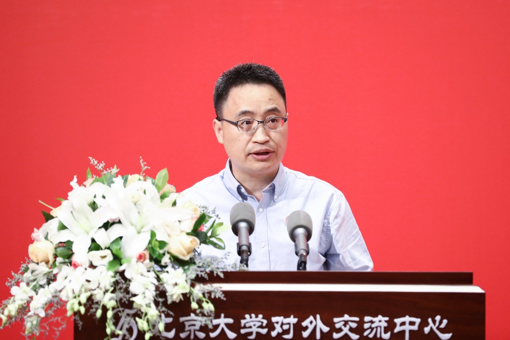 中国物理学会理事长张杰在致辞中指出,北京大学物理学科作为中国物理学教育的前沿阵地和中国物理学会发起单位之一,百余年来始终积极参与中国物理学科发展的决策与规划,推动中国物理学家参与全球科技治理。张杰希望物理学院的青年学子们弘扬科学家精神,继承北大物理的百年传统,用热情和才华为中国物理学事业强魂筑根、擎旗奋进注入蓬勃生机与无限活力。