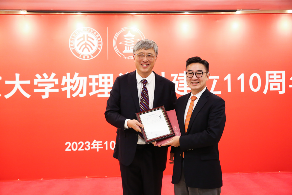 2023年10月14日上午,由北京大学物理学院、北京现代物理研究中心主办的北京大学物理学科建立110周年学术报告会暨北京大学物理学院学术论坛(海外校友专场)在北京大学英杰交流中心月光厅举行。美国罗切斯特大学光学院M. Parker Givens冠名教授、俄罗斯科学院外籍院士、美国科学促进会会士、北京大学物理系1977级本科校友张希成(Xi-Cheng Zhang)博士,香港城市大学物理学系讲座教授、香港高等研究院执行院长、美国科学促进会会士、北京大学物理系1981级本科校友王循理(Xun-Li Wang)博士应邀主讲。学术报告会由北京大学物理学院学术委员会主任欧阳颀院士主持。