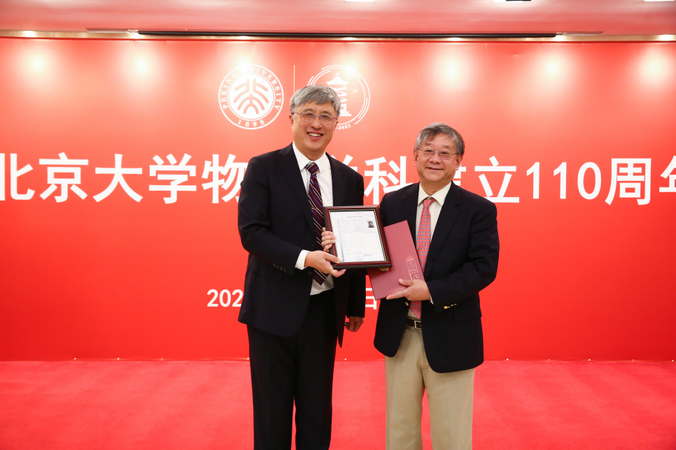 北京大学物理学院院长高原宁院士对两位校友重返母校表示热烈欢迎,赠予他们在北京大学物理系学习时的学籍表复印件,并衷心感谢他们对物理学院发展的长期关注和对青年教师成长的悉心指导。