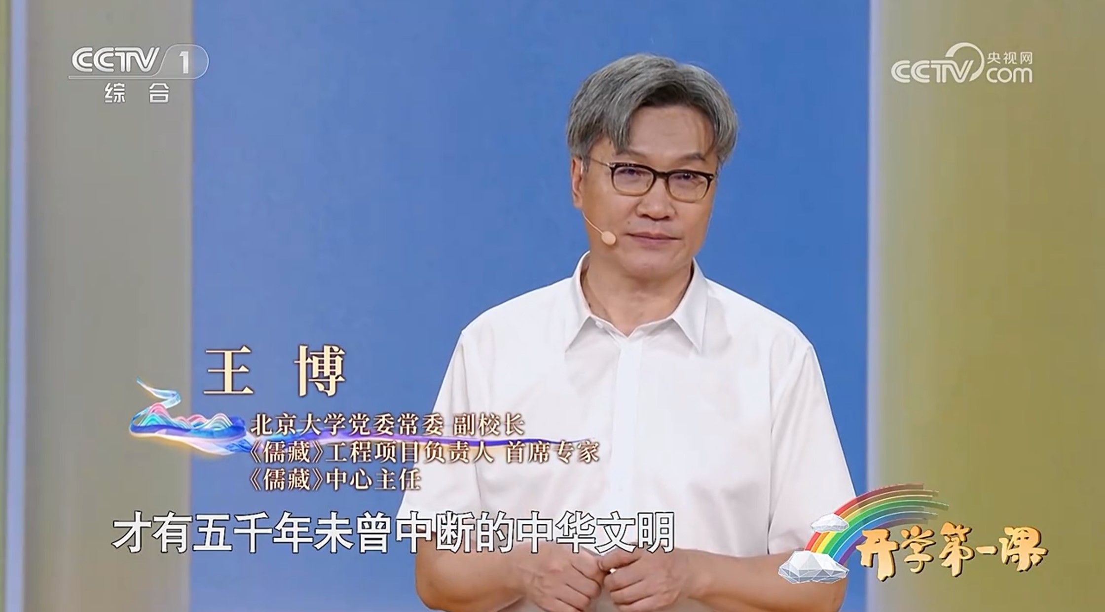 9月1日晚,由中央宣传部、教育部和中央广播电视总台联合主办的大型公益节目2023年《开学第一课》播出。其中,北京大学副校长王博作为《儒藏》工程项目负责人、首席专家和北大《儒藏》编纂与研究中心主任,讲述了《儒藏》典籍背后的故事,为全国青少年带来了精彩的一课。