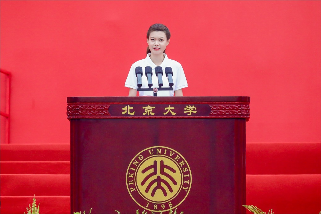 在嘉宾、老师们的共同见证下,新生们集体将校徽佩戴在胸前,与这“永远的校园”血脉相连。胸前“北京大学”四个字格外醒目,这将成为镌刻在这些新北大人心中一生的印记。
