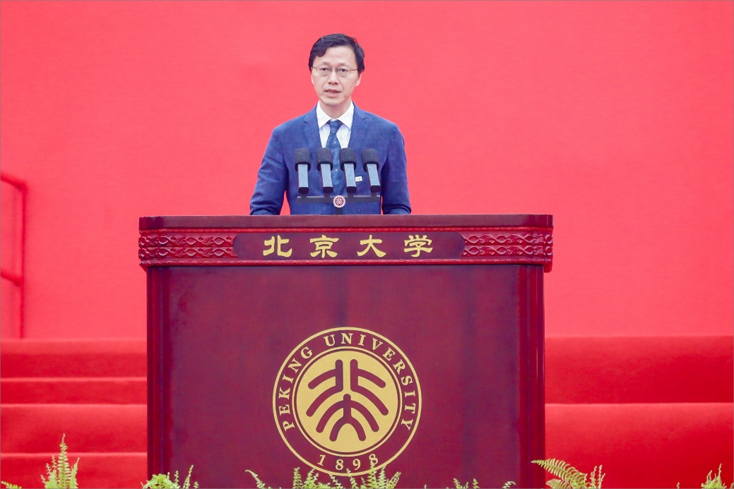 龚旗煌代表全校师生员工祝贺各位新同学圆梦北大并开启人生新征程。他表示,大家怀抱梦想来北大求学,而“梦想从学习开始”,希望同学们弘扬“勤奋、严谨、求实、创新”的学风,勤于学习、敏于求知,打牢成才立业、成就梦想的根基,用好在北大这段求知问学的黄金时期。