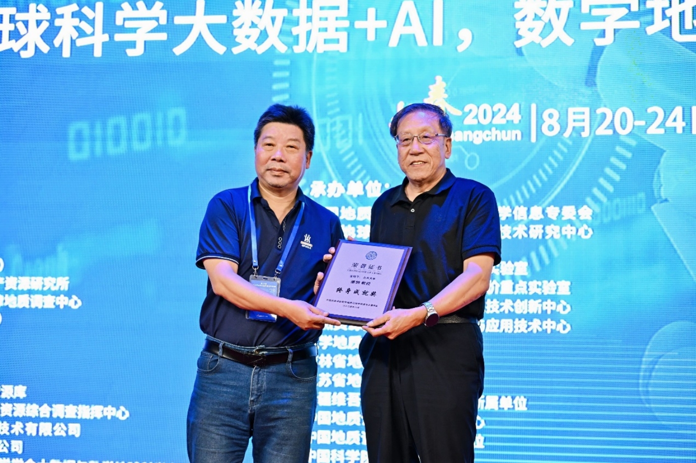 8月20至24日,第二十届全国数学地质与地学信息学术研讨会在吉林长春举行,潘懋教授(右)被授予“数学地质与地学信息终身成就奖”