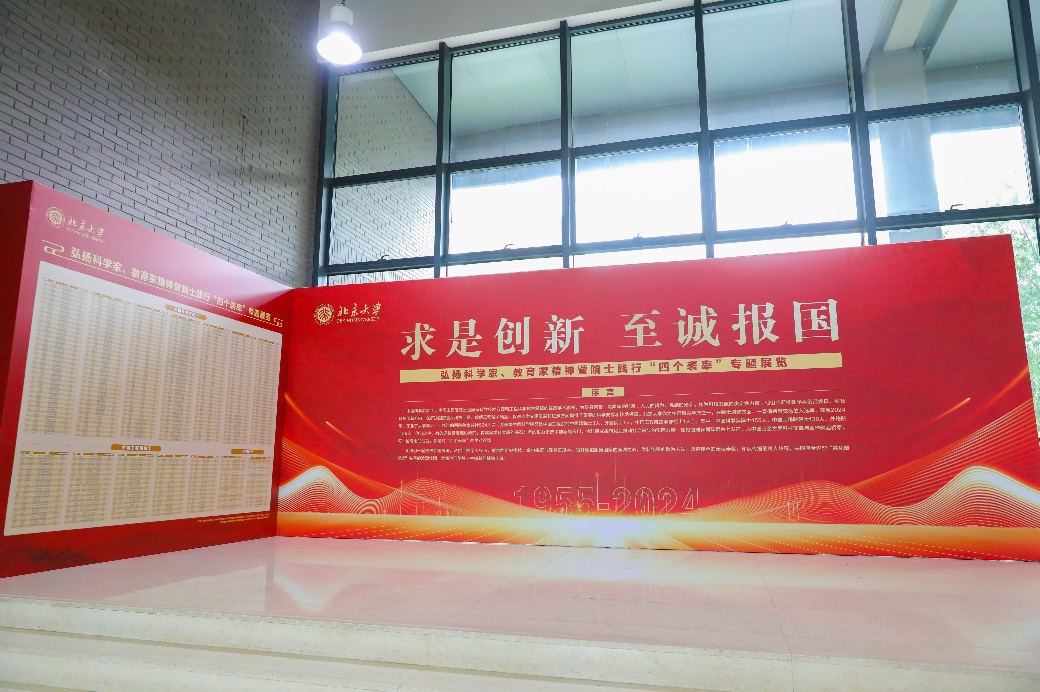 9月6日下午,北京大学“弘扬科学家、教育家精神暨院士践行‘四个表率’专题展览”开幕式在第二教学楼东厅举行