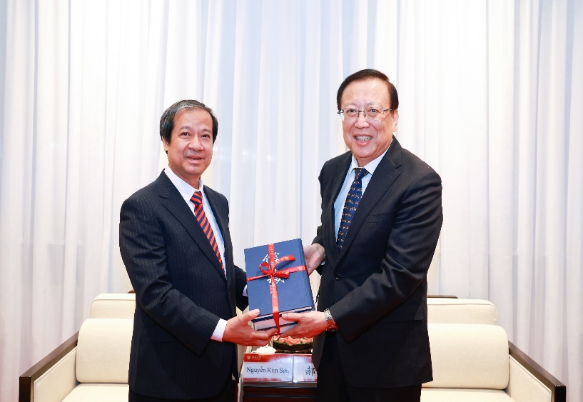 12月9日下午,越南社会主义共和国教育培训部部长阮金山率越南高校代表团访问北京大学,出席中越高校交流会,拜会校领导,访问《儒藏》编纂与研究中心,并与中越学生交流