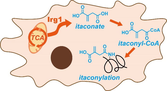 内源代谢物衣康酸通过生成衣康酰辅酶A在蛋白质赖氨酸侧链产生酰基化修饰
