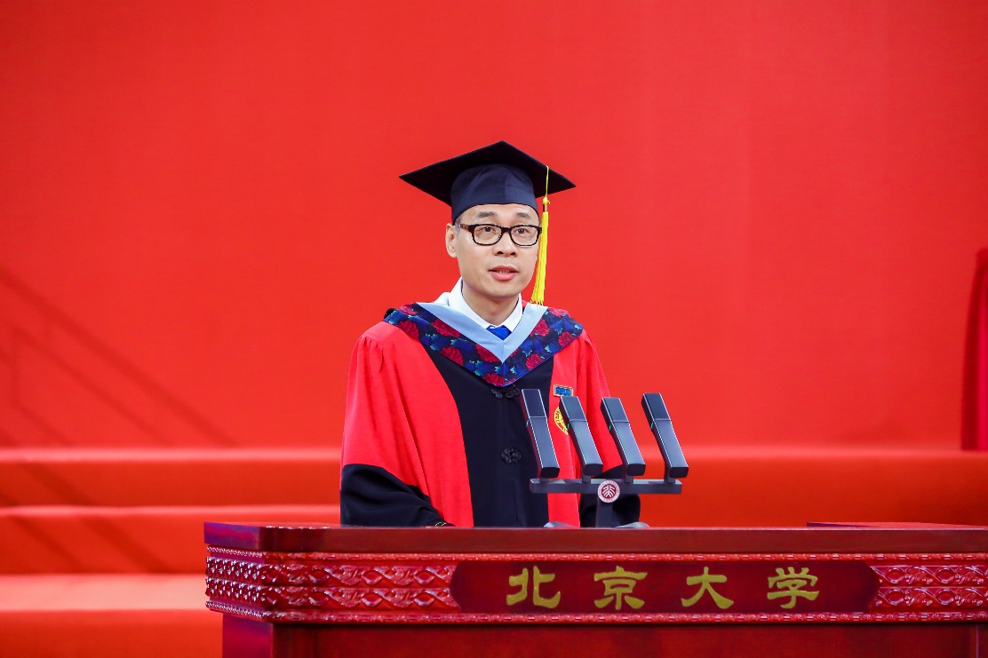 龚旗煌指出,大学时光是最美好的青春年华,同学们的北大生涯更是镌刻了不平凡的青春印记,共同见证了新中国成立70周年、党的百年华诞、北京冬奥会、世界大运会火炬的首站传递等重大历史时刻,北大“爱国、进步、民主、科学”的精神薪火在同学们手中接力传承,大家以蓬勃的朝气不断为北大注入新的活力。他表示,今年是北大建校125周年,在国家天文台的支持和帮助下,国际天文学联合会将一颗小行星命名为“博雅星”,学校专门制作了主题毕业纪念品送给2023届毕业生,希望浩瀚宇宙中的博雅星光为大家提供前行的闪亮坐标,同学们今后无论走到哪里,都要发扬北大人博大雅正的精神气质,写好人生新的篇章。