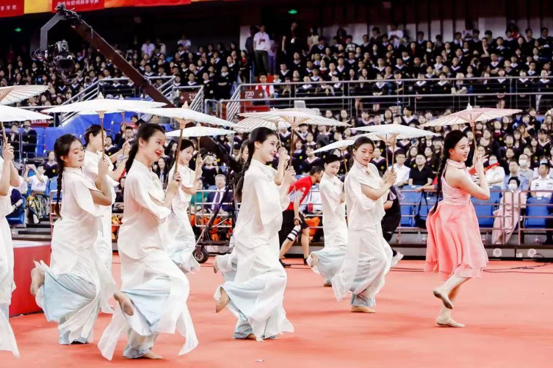 典礼开始前,来自北京大学学生交响乐团、学生艺术总团、教工合唱团和医学部霸云街舞社的老师、同学们,以及部分毕业生代表和附中、附小、附属幼儿园的孩子们联袂献上精彩的暖场表演。《夜空中最亮的星》《篇章》《老楼》《骄傲的少年》……一首首熟悉的祝福歌曲温馨感人,带领同学们重拾美好校园时光。国家一级演员杨洪基教授和北京大学附属幼儿园、附属小学、教工合唱团共同唱响《我和我的祖国》,表达了北大学子的爱国情怀。