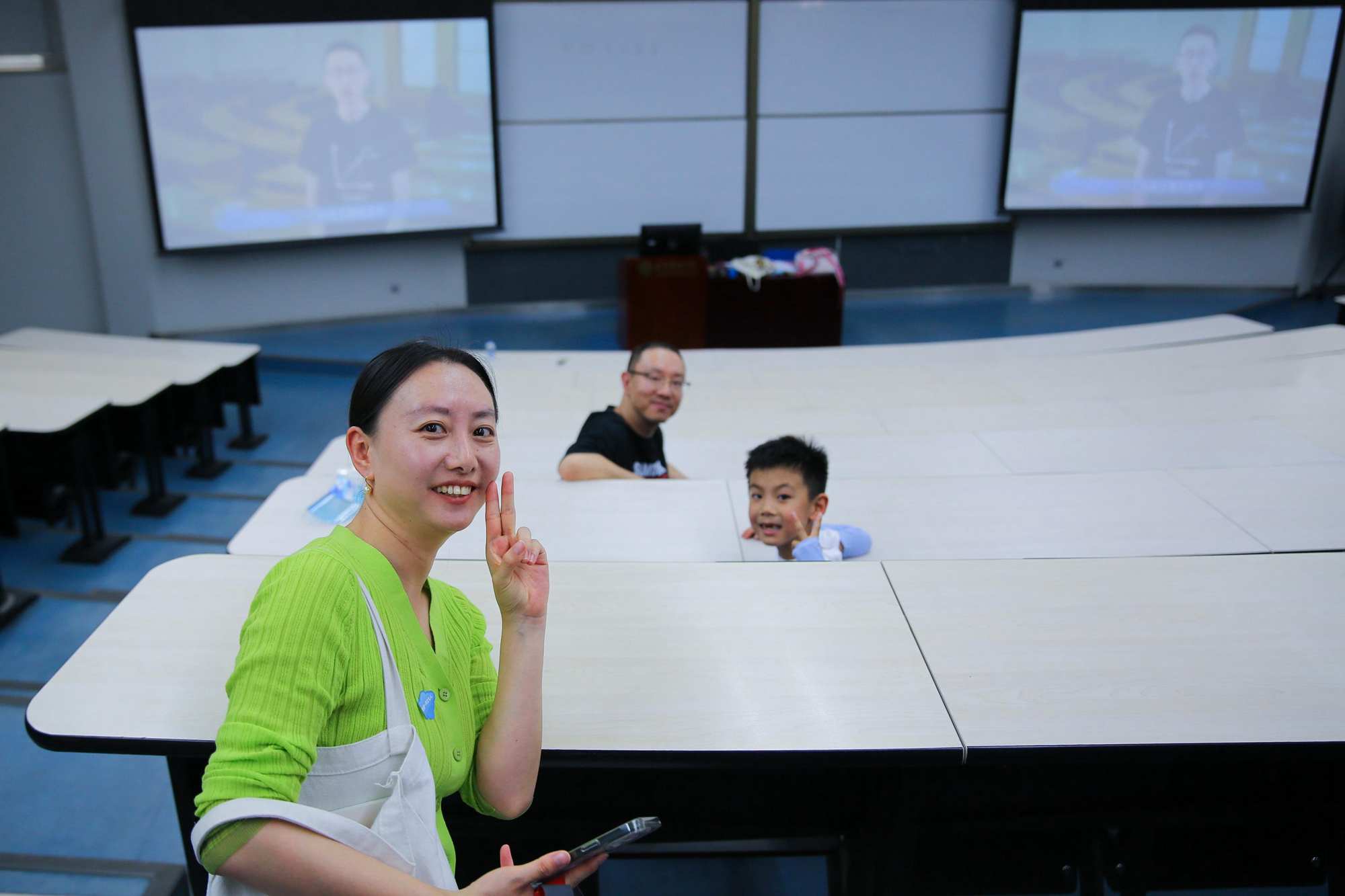 信息科学技术学院的人工智能与机器人实验室吸引了不少学生和家长驻足。在机器人和展板面前,大家交口称赞:“你们这个做得真厉害!”“你们的功能可以和ChatGPT比肩了!”参观完后,一位小学生表示,自己要努力学习,争取以后自己也能在北大做机器人。