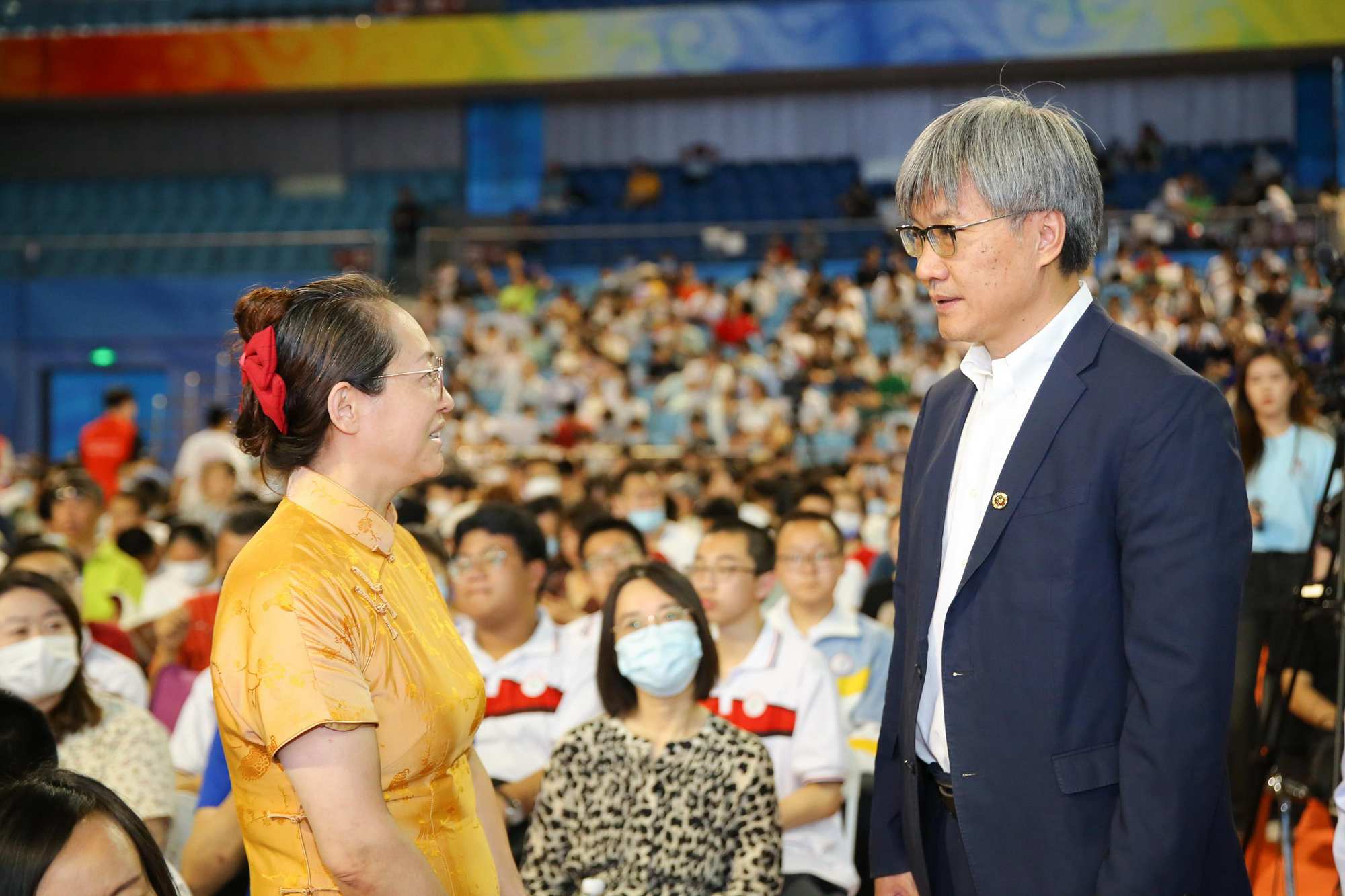 在致辞最后,王博引用中国语言文学系谢冕先生在《永远的校园》一文中的句子,向优秀青年人发出诚挚的邀请。他热切期盼在金秋时节与大家重逢在未名湖这片海洋,并希望所有年轻人都能在充满理想与自由的燕园找到“一生命运的契机”,将自己青春岁月融汇进滟滟湖光、巍巍塔影,不负韶华,不负时代,不负人民。