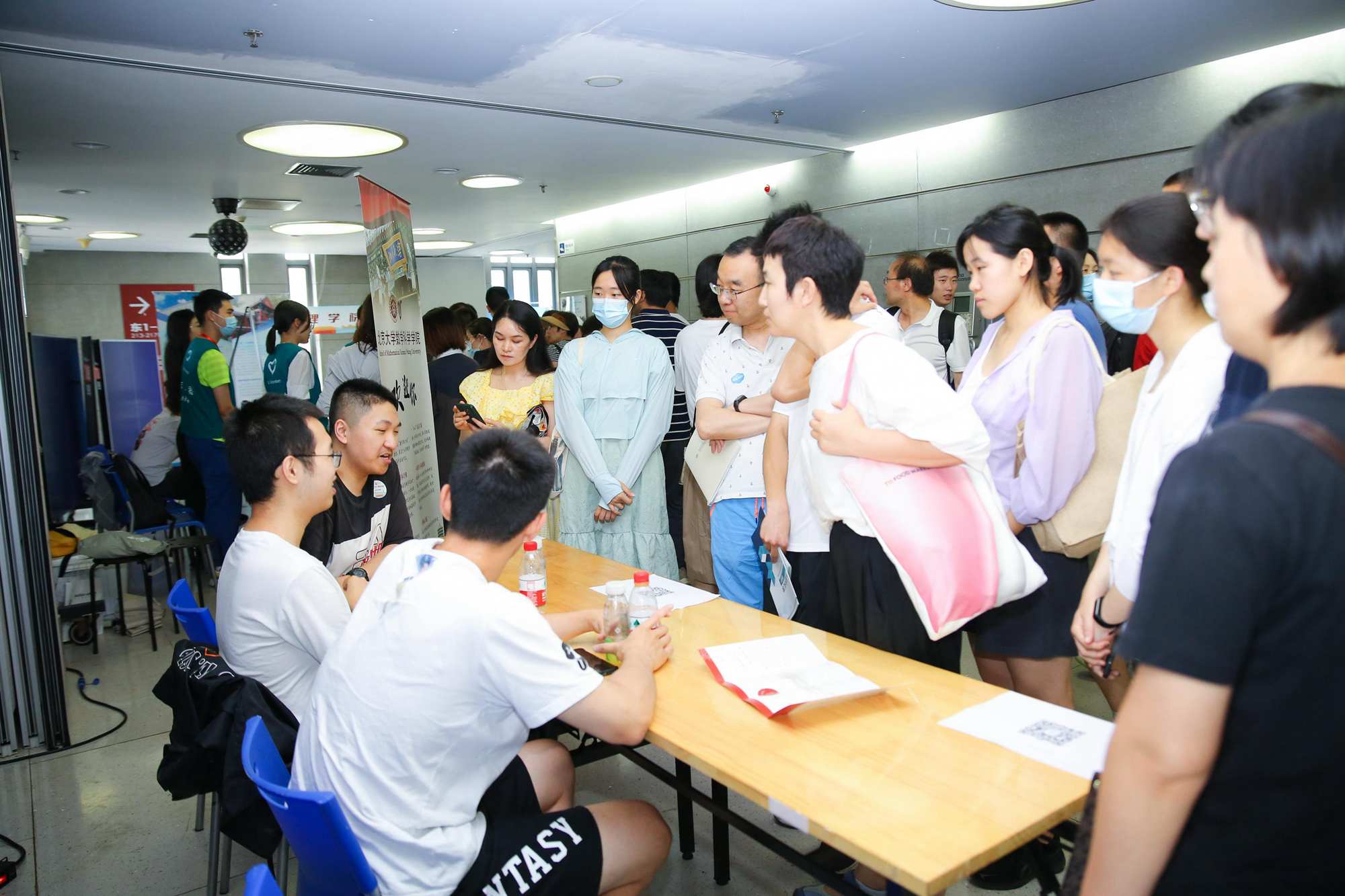 报告会结束后,邱德拔体育馆的二层环廊上,各个院系的咨询展台气氛火爆,人流熙攘。考生和家长针对自己的兴趣和成绩等具体情况,来到对应的院系前进行咨询,现场工作人员和学生志愿者热心、耐心且细心,对咨询者的问题作出细致准确的回答。