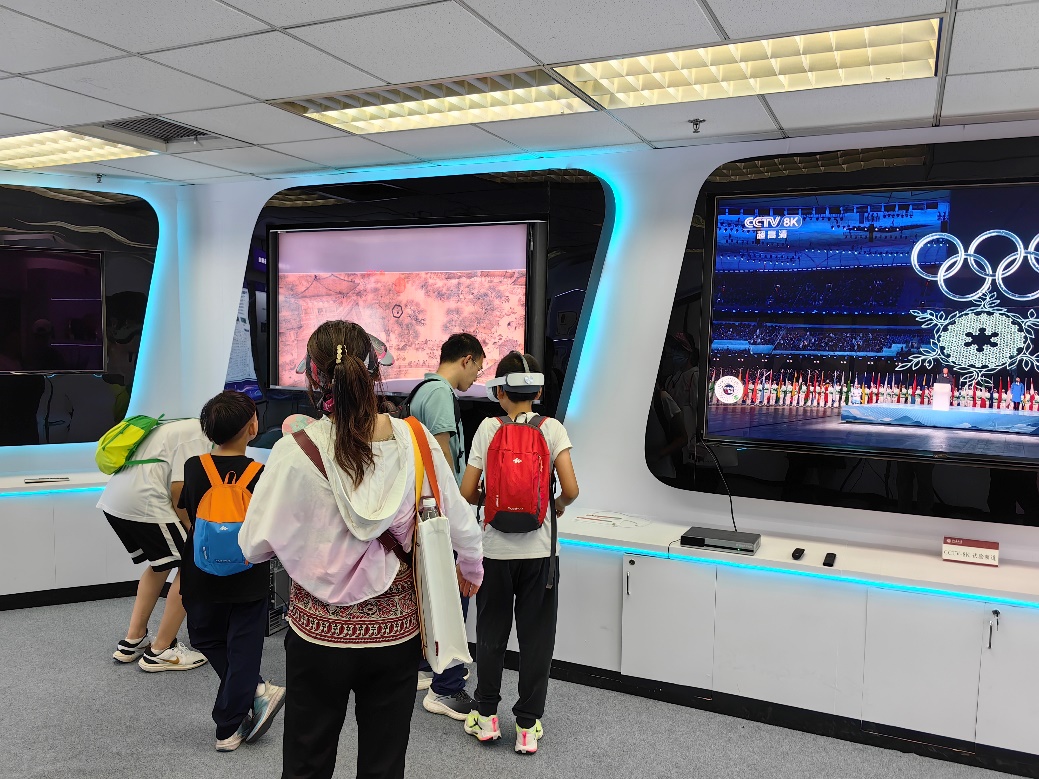 依托于北京大学建设的视频与视觉技术国家工程研究中心主持研发了新一代数字音视频编解码技术标准,实现了我国在该领域的首次国际领跑。展厅再现了曾于2022年北京冬奥会中大放异彩的8K超高清视频直播技术,来访者通过现场观看与VR实景体验,切身为北大领跑的中国技术啧啧赞叹。北京大学地质博物馆同样采用VR技术丰富了观众的参观体验。“这个是两亿年前的化石”,一番实景体验后,来自北京一零一中学的王同学激动不已,他说,自己第一次如此直观、生动地接触、了解化石。