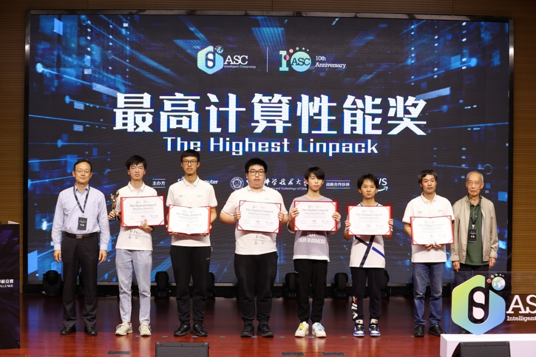 在总决赛中,浙江大学代表队实现计算系统在3000W总功耗约束下109万亿次/秒的HPL持续浮点运算性能,获得最高计算性能奖。