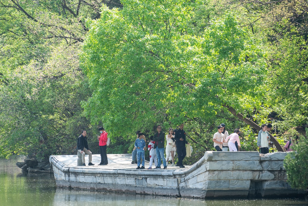 四月燕园,春和景明。学生与家长们在未名湖畔漫步,在博雅塔下驻足,在园内亭台与花草间流连,尽情拥抱着燕园的一草一木、一砖一石,近距离触摸北大的历史脉搏与人文气韵。“燕园寻章・未名印记”校园景点打卡集章活动吸引了不少参观者参与其中,他们乐此不疲地在校园各处穿梭,打卡北大地标建筑,留下自己与春日燕园好景的独家记忆。