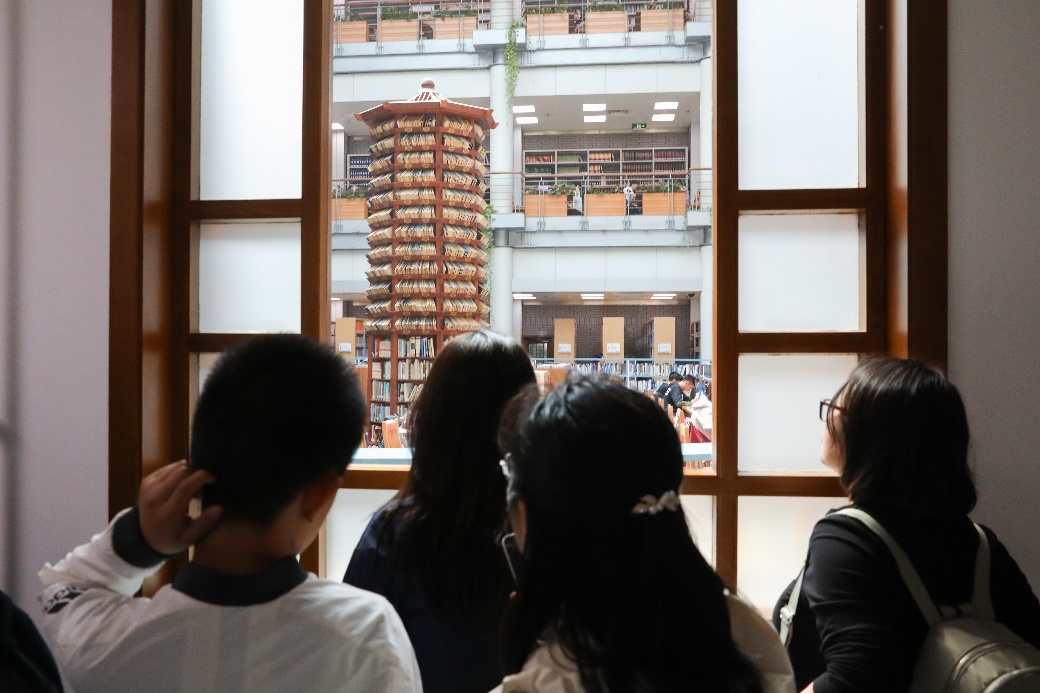 图书馆内,求知若渴的莘莘学子沉浸其间,这座百年书城的浩繁卷帙令他们目眩神迷,有些同学索性挑出自己感兴趣的书籍,安静阅读起来,享受这份一期一会的春日时光。馆内临时展览“‘学科之美’——系列讲座回顾展”“可爱中国书——中国书史展”前,许多参观者认真观看展览内容。寓教于乐的展览内容帮助同学们增长了知识、拓宽了视野,也给他们提供了了解北大的另一重视角。