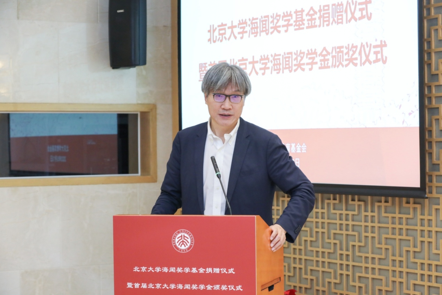 海闻表示,很荣幸能以自己的名义捐资设立奖学金,这项奖学金是他身为1977级校友在毕业40周年之际对母校的一份心意和回馈,奖学金也是在汇丰商学院校友们的共同努力和大力推动下才得以设立的。他指出,北大的教育应教导学生忧国忧民、勇担社会责任,追求卓越、不断改革创新。基础学科的建设和国际人才的培养,对国家的发展具有重要意义,必须给予大力支持。他希望未来有更多的校友加入捐赠行列,共同为北大教育事业和国家的发展作出贡献。