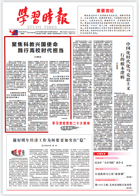 新征程上,我国高校应深刻把握党中央对教育、科技、人才的重大战略部署,为把我国建成世界重要的高等教育中心、科学中心、人才中心和创新高地而踔厉奋发、勇毅前行,为全面建设社会主义现代化国家、全面推进中华民族伟大复兴开辟发展新领域新赛道,不断塑造发展新动能新优势。