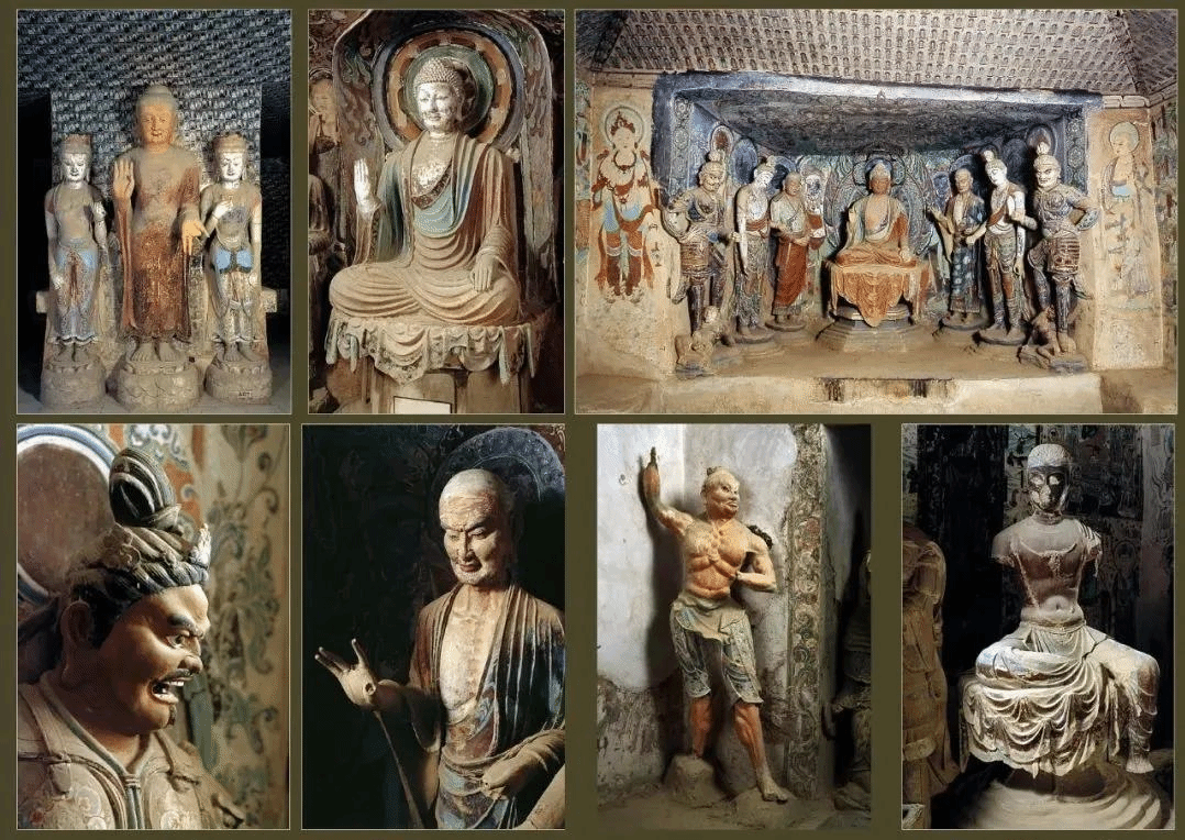 石窟艺术融合洞窟建筑、彩塑、壁画,洞窟形制多样,有禅窟、中心塔柱窟等。彩塑题材广,包括佛、菩萨等。壁画内容丰富,分七类,以图像叙事诠释佛教经典,展现古代社会风貌,被誉为 “墙壁上的博物馆”。