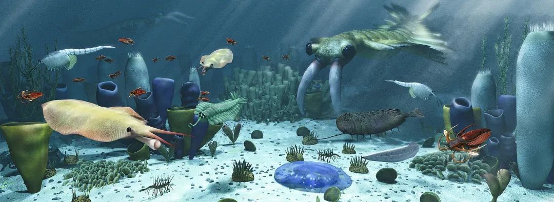 在寒武纪初期,地球生命经历了一场规模宏大、影响深远的“爆发”,在短短几百万年内诞生了90%以上的动物门类,节肢、腕足、蠕形、海绵、脊索动物等纷纷出现,形成多种门类并存的格局。