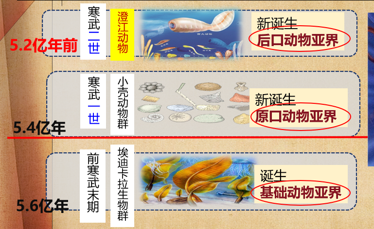 寒武纪大爆发包括三幕,依次形成3个动物亚界