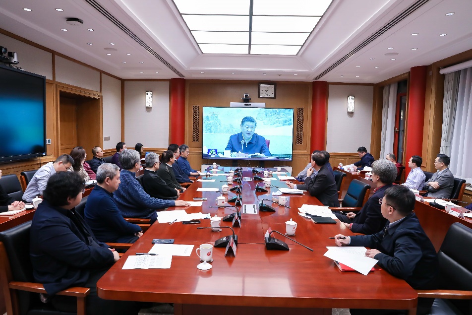 座谈会前,与会人员集体收看了《新闻联播》关于中共中央政治局第三次集体学习的报道。