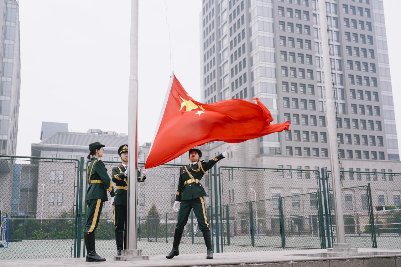 当天早晨,学校同时在五四体育场举行了校内升旗仪式,引导北大青年学子传承中华民族铭刻历史、承续现实的精神风骨,坚守北大人始终不变的爱国心、强国志、报国情。