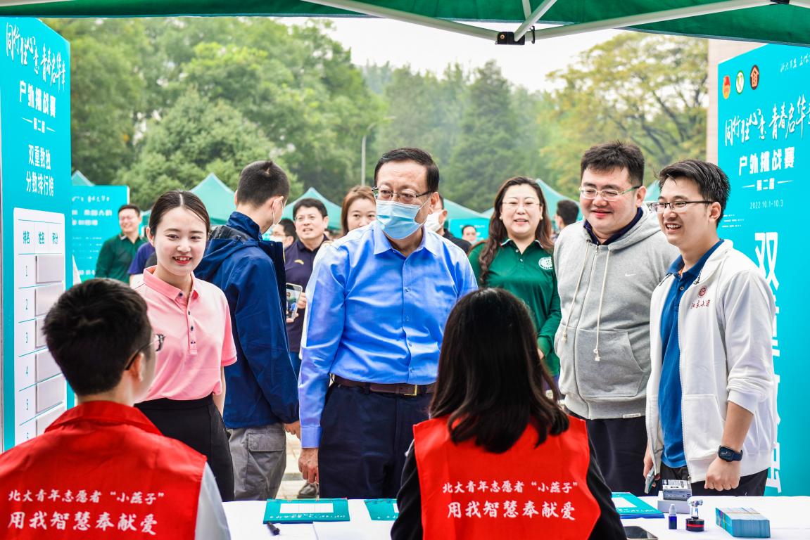 10月1日上午9时30分,嘉年华启动仪式在百周年纪念讲堂广场举行。郝平、顾涛、孙庆伟、董志勇一行视察了活动现场的布置情况,与参与活动的学生进行了亲切交谈。
