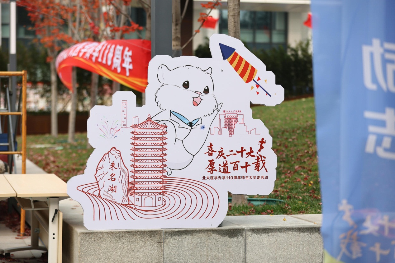 无论是沿途独具匠心的道旗,还是活泼可爱的吉祥物置景,都引起了北大医学人的集体共鸣。庄辉已在北医工作59年,亲眼见证北医日新月异的发展,他深感自豪,并相信在新一代北大医学人的共同努力下,将会为健康中国建设作出更大的贡献。刘珏认为:“我们走的每一步,不仅仅是物理意义上的距离,也是我们在新时代新征程中为学校未来发展作出的每一步努力。”周庆庆激动地说:“作为新时代的青年学生,作为一名未来的医者,我们将以仁心仁术为推进医学事业发展添一分热,发一分光!”焦宁表示,要努力当好青年成长的陪跑员,“带领他们不断探索新知,在有着百十年积淀的沃土上再谱新篇”。今天也是药物依赖性研究所鲍彦平老师的生日,她回忆起每次大步走活动:“这不仅仅是一个强身健体的活动,也是凝聚我们热爱、感悟办学宗旨与北医精神的时刻。”