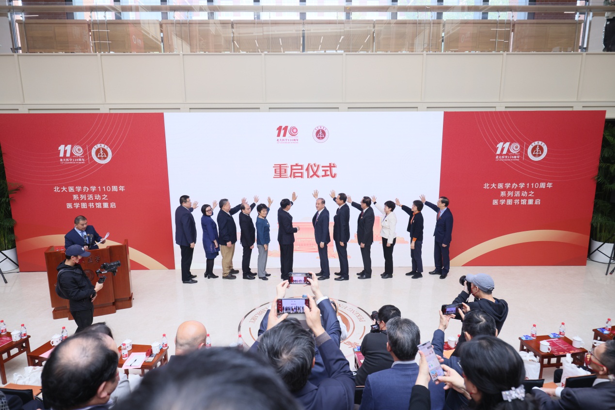 出席活动的领导和嘉宾有:中国科学院院士、第十、十一届全国人大常委会副委员长、第十二届全国政协副主席、北京大学医学部原主任韩启德,中国工程院院士、中国科协党组书记、分管日常工作副主席、书记处第一书记张玉卓,教育部副部长孙尧,北京大学党委书记郝平,教育部原副部长林蕙青,国家图书馆馆长、中国图书馆学会理事长熊远明,北京大学原常务副校长、医学部原常务副主任柯杨,中国工程院院士、北京大学常务副校长、医学部主任乔杰,北京大学党委常务副书记、医学部党委书记陈宝剑,中国工程院院士、清华大学生物医学工程系讲席教授程京,中国科学院院士韩济生、童坦君、张礼和、陆林,中国工程院院士、康复大学校长董尔丹,原北京医科大学常务副校长程伯基,中国科协办公厅副主任阮草,北京大学图书馆馆长陈建龙,中国人民大学图书馆党委书记牟锋,杰出校友、美国国家医学院院士王存玉,杰出校友、北京予捷矿业投资有限公司胡毅、许捷夫妇等各级领导、两院院士、校友代表、图书馆参建单位代表、师生员工代表和长期关心支持北大医学的社会各界代表。