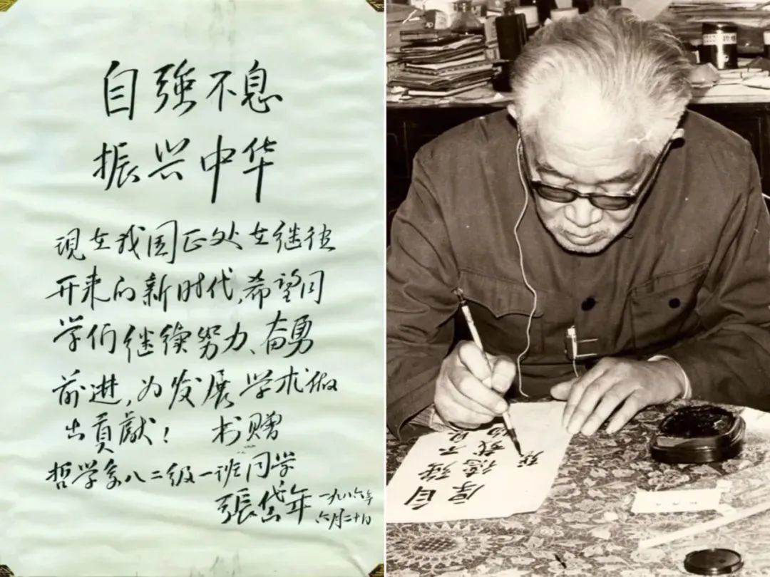 经过整整十年的辛勤劳动,他的《中国哲学史新编》7卷本150万字已全部完成了。当时我非常高兴地握住他的双手,向他表示祝贺,他的双手是那样柔软、温暖,神色是那样平静安详、怡然自若。然而此时先生的双眼已经失明了,而思维仍然十分清晰,他是用口述的方式,由助手代笔。由85岁一直写到95岁,这是用生命在写作,把自己全部精神和心血都倾注在他的著作中,将过去失落的自我重新找了回来。