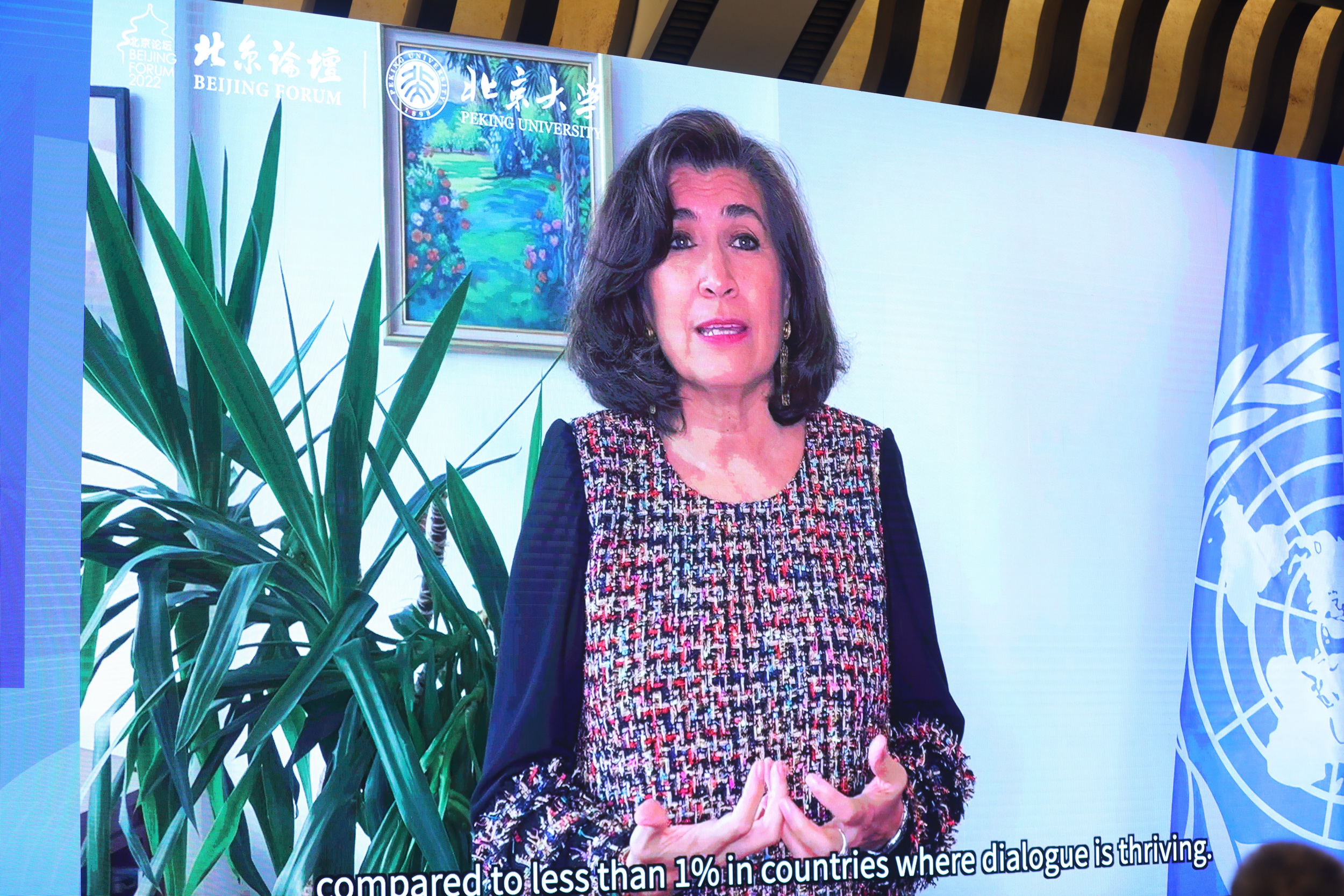 联合国教科文组织社会科学和人文科学助理总干事加布里埃拉·拉莫斯在致辞中表示,本次北京论坛的召开正值国际社会环境进入关键节点,新冠肺炎疫情已经夺走了数百万人的生命,疫情带来的次生灾害对人类社会产生了巨大影响。联合国教科文组织始终致力于促进全球合作,推动跨文化对话,交流合作在当今国际社会显得更加珍贵。她期待本届论坛能够为推动对话交流搭建平台,并预祝本届论坛圆满成功。