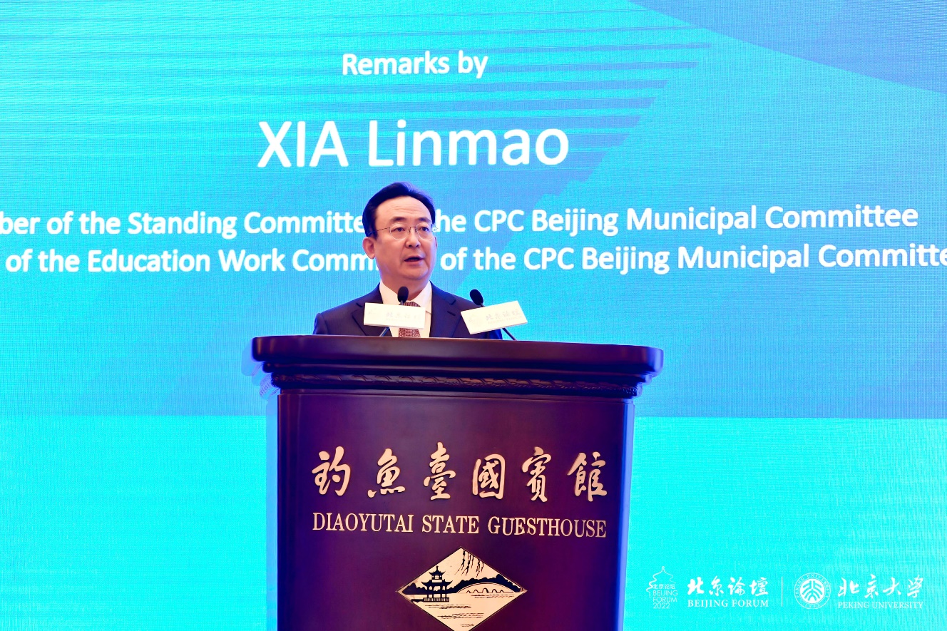 夏林茂向论坛的开幕致以热烈的祝贺。他指出,近年来,北京市不断推进国际交往中心功能建设,已成为世界各国文明交流互鉴的重要窗口。依托北京文化底蕴,北京论坛发挥着促进文化交流的桥梁作用,推动了中外文明的对话与合作,更体现着北京开放的胸襟和更加国际化的愿景。他期待,依托北京论坛的对话平台,各国学者必将不断增进彼此了解和友谊,共同为世界发展和人类未来贡献智慧。