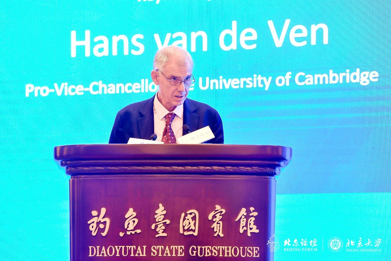 方德万在担任剑桥大学副校长的同时也是剑桥大学东亚研究系的中国现代史教授,这一年他将有4个月在燕园工作生活,担任北大历史学系的客座教授。方德万在主旨报告中指出,当今社会,国际思想交流机会急剧减少,这就更加凸显了北京论坛的必要性和特殊性。方德万在主旨报告中借用毛泽东同志的“早晨八九点钟的太阳”来勉励中国青年,讲解了美国政治家威尔基“天下一家”的思想和实践,并强调了在全球动荡再起的时代,打造新的世界秩序的必要性。