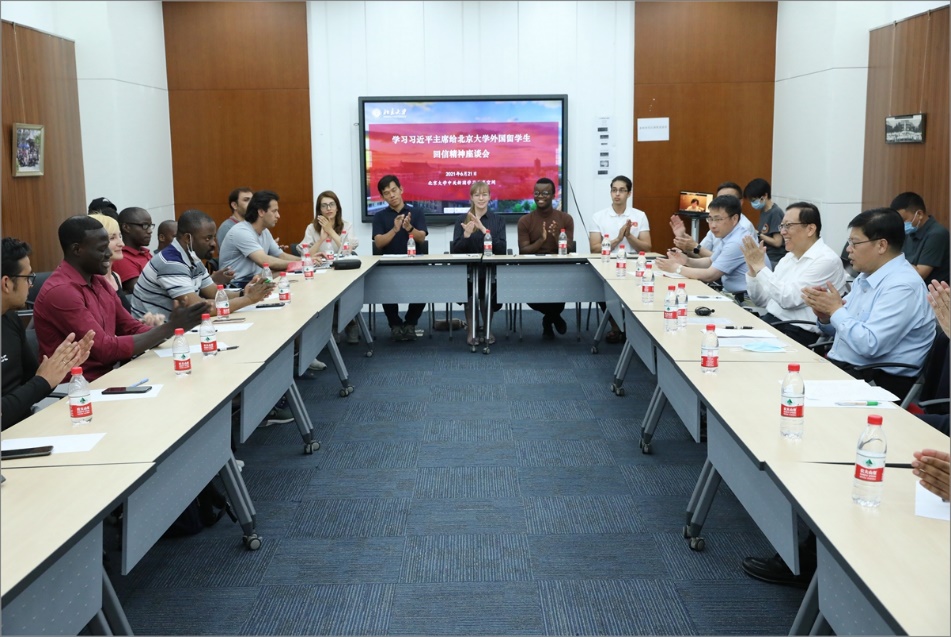 6月21日,中共中央总书记、国家主席习近平给北京大学的留学生们回信。当晚,北京大学第一时间召开党委常委会和留学生代表座谈会,认真传达学习习近平总书记重要回信精神。图为留学生代表座谈会现场。王天天 摄