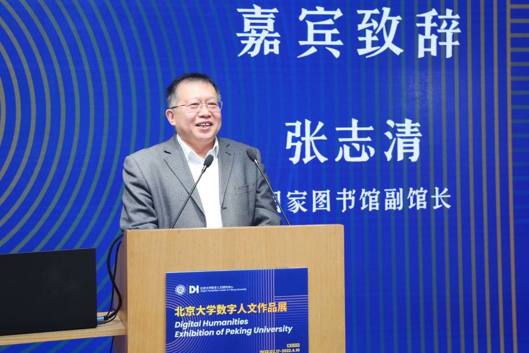 北大数字人文研究中心主任、信息管理系教授王军对本届数字人文作品展进行了介绍,并感谢学校领导、各院系师生的支持。
