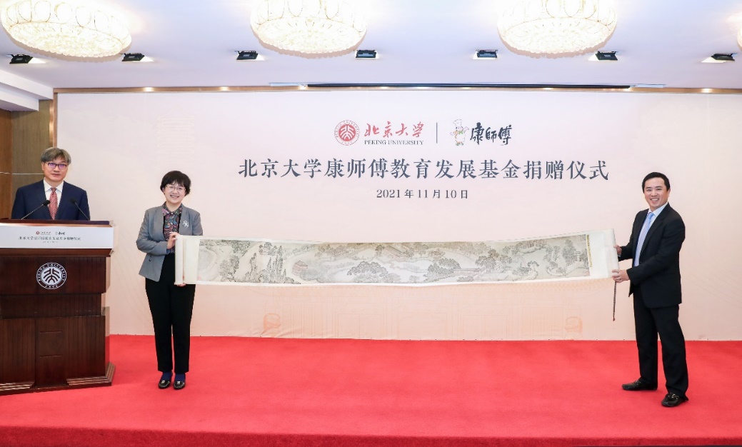 11月10日,康师傅控股慷慨捐资设立北京大学康师傅教育发展基金,支持学校的师资建设、人才培养与面向未来的学科布局和重点规划,支持北京大学全方位的发展建设。