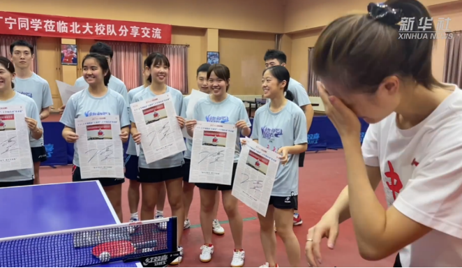 十五岁时,她跟着中国乒乓球队来到北京大学交流。当时队里的女子主力是张怡宁、王楠等人,还是小队员的丁宁,在媒体报道中没有被提到名字。