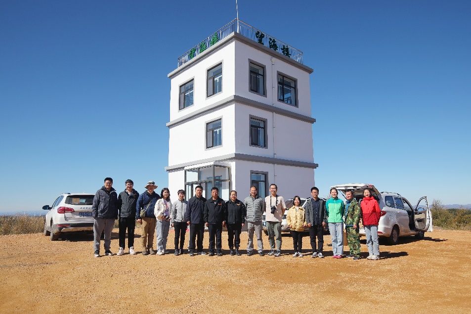 在海拔1900米的月亮山上,护林员刘军、王娟夫妇驻守望海楼13年,日夜看护着这片林子。回想起总书记亲切看望他们的情景,刘军、王娟夫妇仍然很激动。他们带记者一行参观了望海楼,并和记者合影留念。离望海楼不远处是北大塞罕坝生态站的月亮山气象观测场,郑成洋给大家介绍了这个气象观测场的观测项目和建设情况。