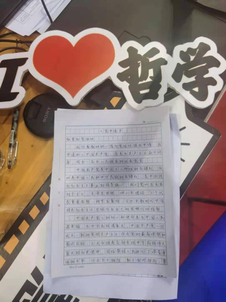 哲学系新生于金文的入党申请书