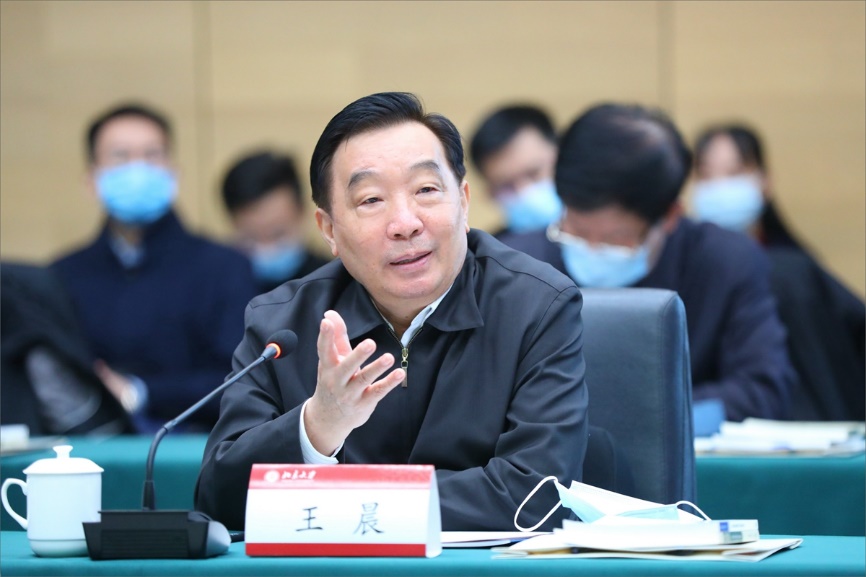 王晨指出,前不久召开的中央全面依法治国工作会议明确了习近平法治思想在全面依法治国中的指导地位,这是我国社会主义法治建设进程中具有里程碑意义的大事。习近平法治思想是全面依法治国的根本遵循和行动指南。新形势下,我国正加快构建以国内大循环为主体,国内国际双循环相互促进的新发展格局。我国与世界各国的经贸联系将更加紧密,相关领域人才需求愈加迫切。我们要以习近平法治思想为指导,加快推进涉外法治人才培养工作,培养既掌握国内法律又熟悉国际法、国别法的高素质人才,更好维护我国公民和企业合法权益,更好维护国家主权、安全、发展利益。希望同学们立下雄心壮志,努力学习专业知识,“培养实战能力”,未来在法律界、法学界以及各相关领域为国争光,为国家发展与时代进步贡献更多才智。