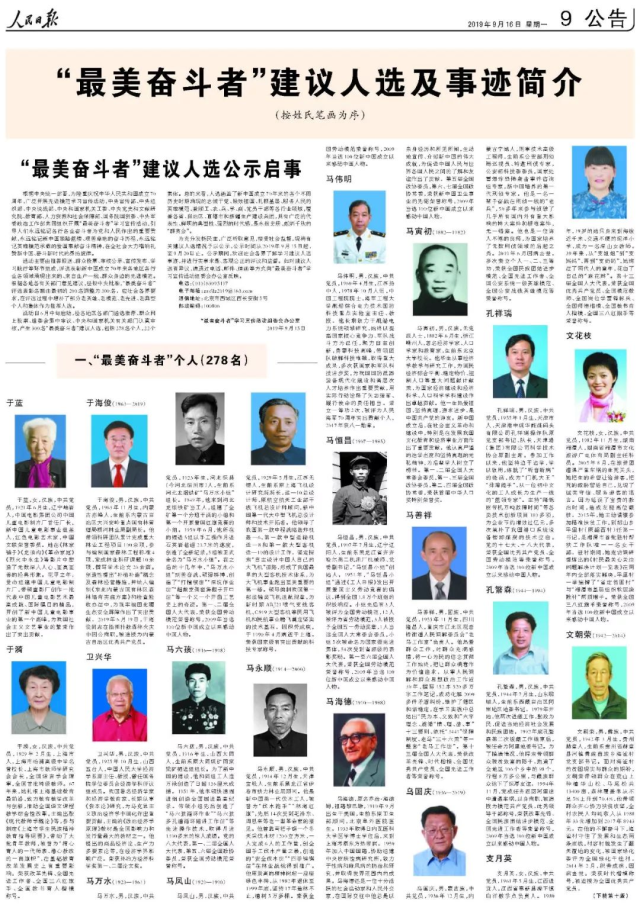 为隆重庆祝中华人民共和国成立70周年,广泛开展先进模范学习宣传活动,根据中央统一部署,组织开展“最美奋斗者”学习宣传活动。“最美奋斗者”建议人选的公示提到,经各地区各部门遴选推荐、群众网上投票、组委会集中审议、中央和国家机关有关部门认真审核,产生300名“最美奋斗者”建议人选,包括278名个人,22个集体,人选涵盖了新中国成立70年来的各个不同历史时期涌现的忠诚于党、报效祖国、扎根基层、服务人民的英雄模范。