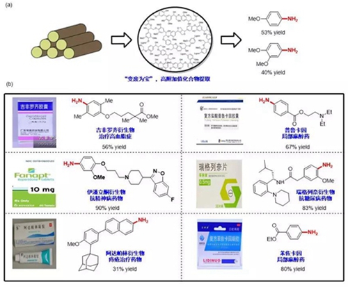 图2.碳碳键胺化方法在木质素降解及药物合成中应用