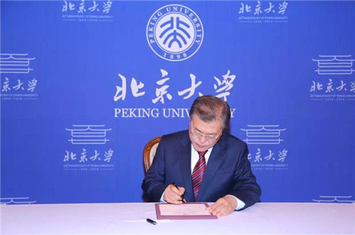 2017年12月15日上午,正在我国进行国事访问的韩国总统文在寅携访华代表团访问北京大学,并在北京大学英杰交流中心阳光厅发表演讲。随行来访的有韩国国会议员李海瓒,韩国副总理兼战略和金融部长金东兖,韩国外交部长康京和,韩国驻华大使卢英敏等。中国教育部副部长孙尧,中国驻韩国大使邱国洪,北京大学党委书记、校务委员会主任郝平,校长林建华及300余名北大师生代表出席了演讲会。演讲会由北京大学副校长田刚主持。