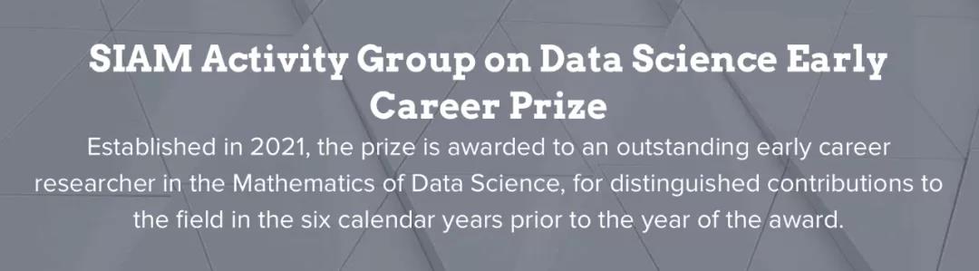 SIAM数据科学青年奖由SIAM(美国工业与应用数学学会)每两年在全世界范围颁发一次,旨在奖励一名在数据科学领域做出杰出贡献的青年学者。今年评奖委员会包括了德国、美国、比利时和中国香港等多位在应用数学、机器学习和优化领域的国际著名学者。颁奖仪式将在2022年9月份在美国圣地亚哥的SIAM数据科学会议上举行。届时苏炜杰将在SIAM大会上作全体特邀报告。 苏炜杰现为宾夕法尼亚大学沃顿商学院统计与数据科学系和工学院计算机系助理教授,以及Facebook访问科学家。苏炜杰教授同时还兼任宾大机器学习研究中心联合主任,以及任职于应用数学和计算数学项目执行委员会。此外还供职于宾大沃顿智能商务中心、Warren网络数据科学中心和北京智源人工智能研究院青源会。他曾在2019年和2020年分别获得NSF CAREER Award和斯隆研究奖。