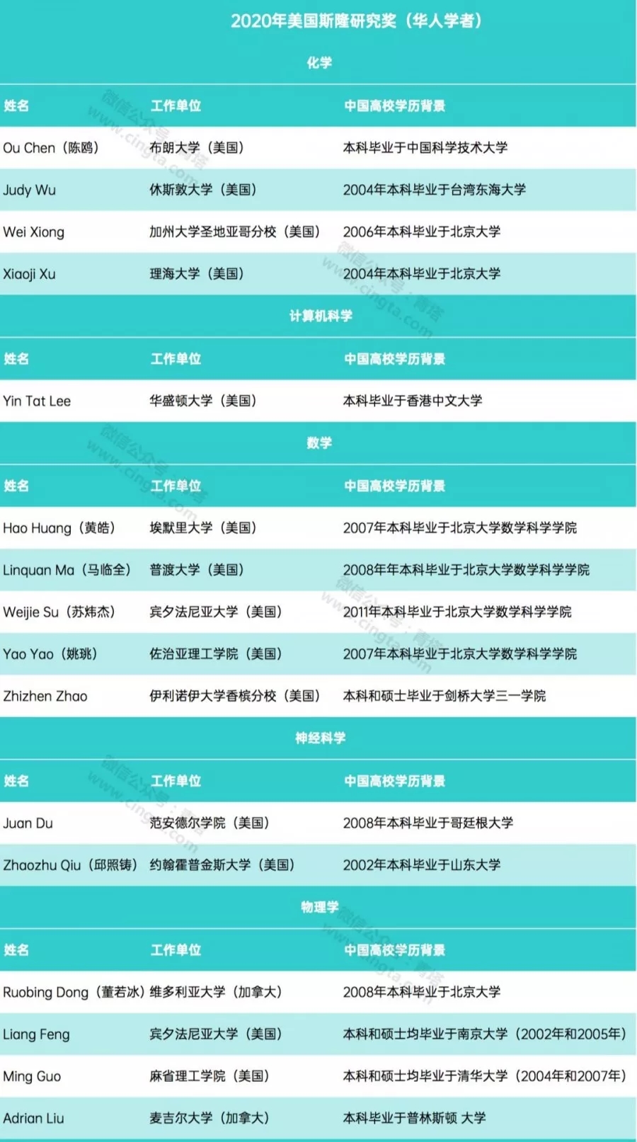 日前,美国艾尔弗·斯隆基金会公布了2020年斯隆研究奖(Sloan Research Fellowships)获奖名单,共有126位杰出青年科学家获奖。