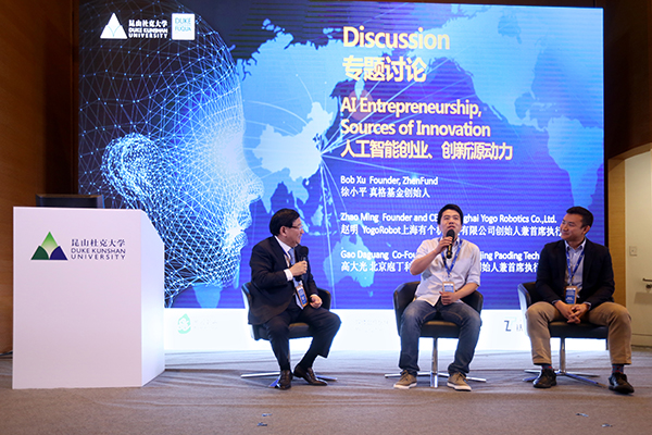 徐小平、有个机器人创始人赵明在2018年昆山杜克大学的杜克国际论坛上讨论 昆山杜克大学 图