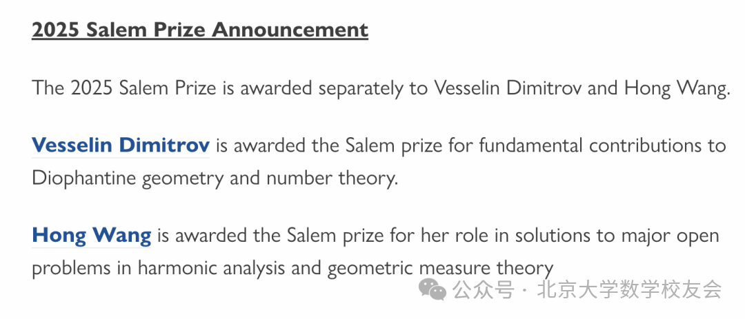 近日,北大数学07级本科校友王虹获得2025塞勒姆奖,以表彰其在调和分析和几何测度论领域解决一系列重要开放问题中所作的贡献。